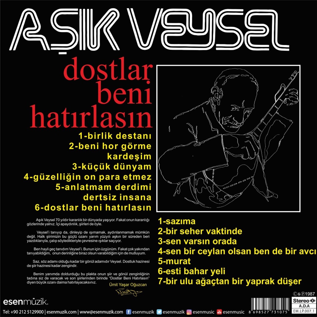13 güzel eserden oluşan Aşık Veysel yıllar geçse de bitmeyecek bir sevgidir gönlümüzde.
