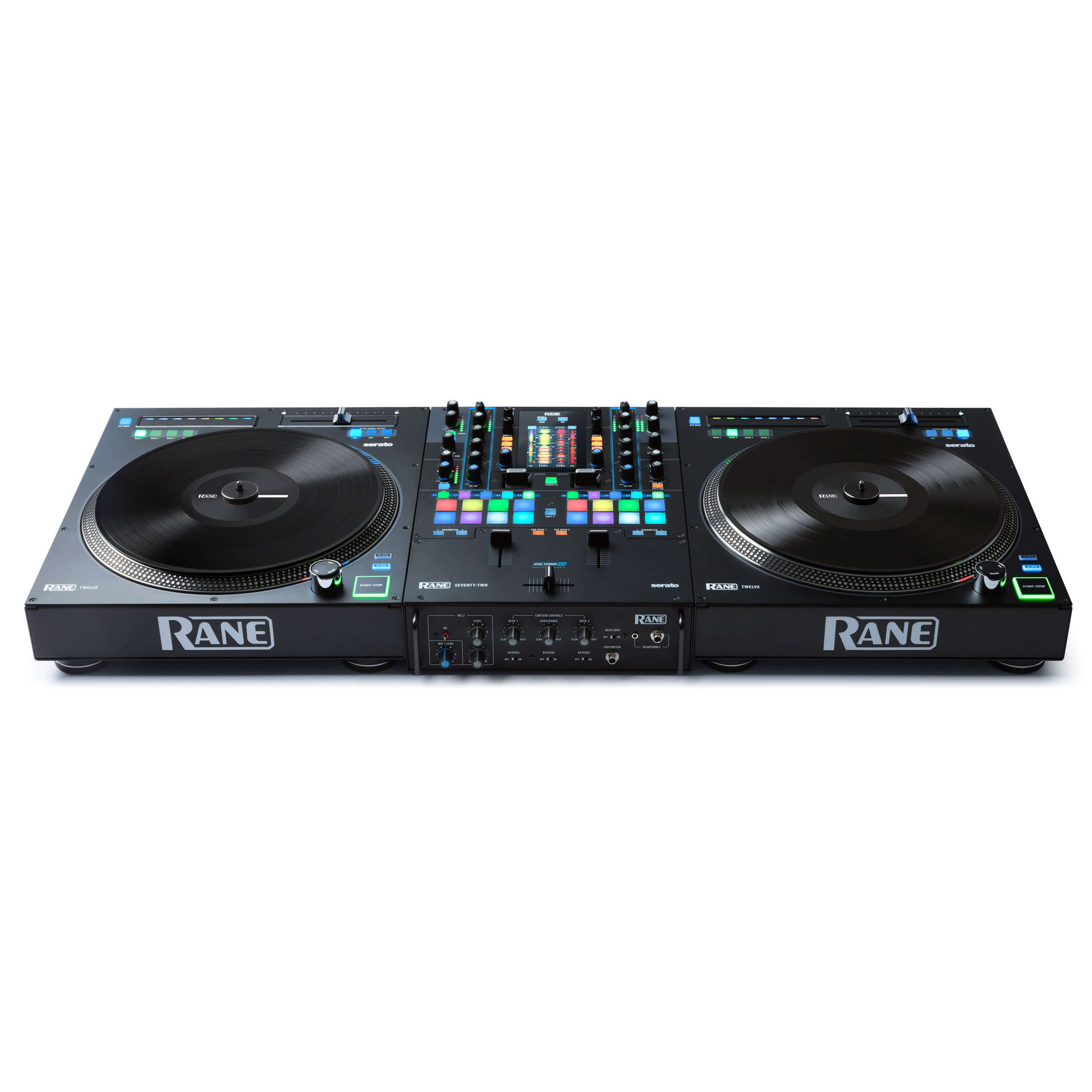 Rane Twelve, kırılgan iğneler ve zıplama sesi kolları olmadan basit, saf ve güçlü bir motorlu DJ kontrol sistemidir. İşleri tanıdık bir döner tabla düzeni ve boyutuyla tutarlı tutan tek net ayırıcı, parça arama ve arama kolu ayarlamak veya ton kolunun yerine sıcak ipuçlarını tetiklemek için hassas, çok fonksiyonlu bir dokunmatik şerittir.